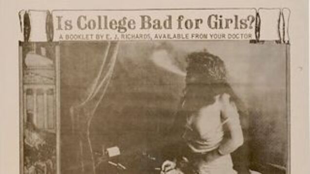 "Is College Bad for Girls?" asks this 1905 booklet—unearthed by Melinda Lo and found via Christian Nightmares—by E.J. Richards and available at turn-of-the-century physicians' offices everywhere. Good thing we no longer talk like that!