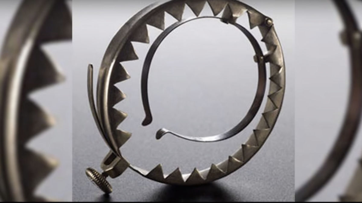 The tiny iron maiden is actually fairly simple: just a little steel clip with metal teeth designed to poke any erection until it de-erects.