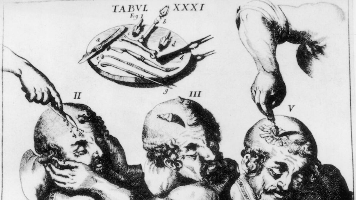 According to Encyclopedia Britannica, trepanation or trephination was used to remove fragments of bone that interfered with the brain after traumatic brain injury, or to relieve intracranial pressure by allowing the release of blood. And people have been performing it for millennia in Europe and Mesoamerica: the earliest evidence of trepanation was found in a 7,000-year-old burial site in Alsace, France on a man who had died at around 50 years old.